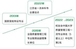 学院秉承质量创新特色,以“共建机制,共同育人,共协创新,共赢发展”为原则、“产教融合”为导向,加强“学院协会+企业+平台+N”多方参与的“产教融合”产业链建设,稳步推进产业链中的N,打造具有企业发展、人才培养等多功能的“产教融合”新型平台。学院与南京钢铁集团有限公司党委签署党建创新联盟协议,加入南京生态科技岛人工智能产业链党建联盟,与中国检验检疫科学研究院测试评价中心签订协议并经常与如南京市产品质量监督检验院、亨通集团、江阴特钢、九牧集团等优秀企业进行会议探讨、走访、调研等活动。对于现代产业和教育,学院管理科学与工程专业、工程管理专业着重关注第四次工业革命和产业变革带来的新机遇、新思想、新知识、新技术,加强现代经济学和信息科技知识的学习。