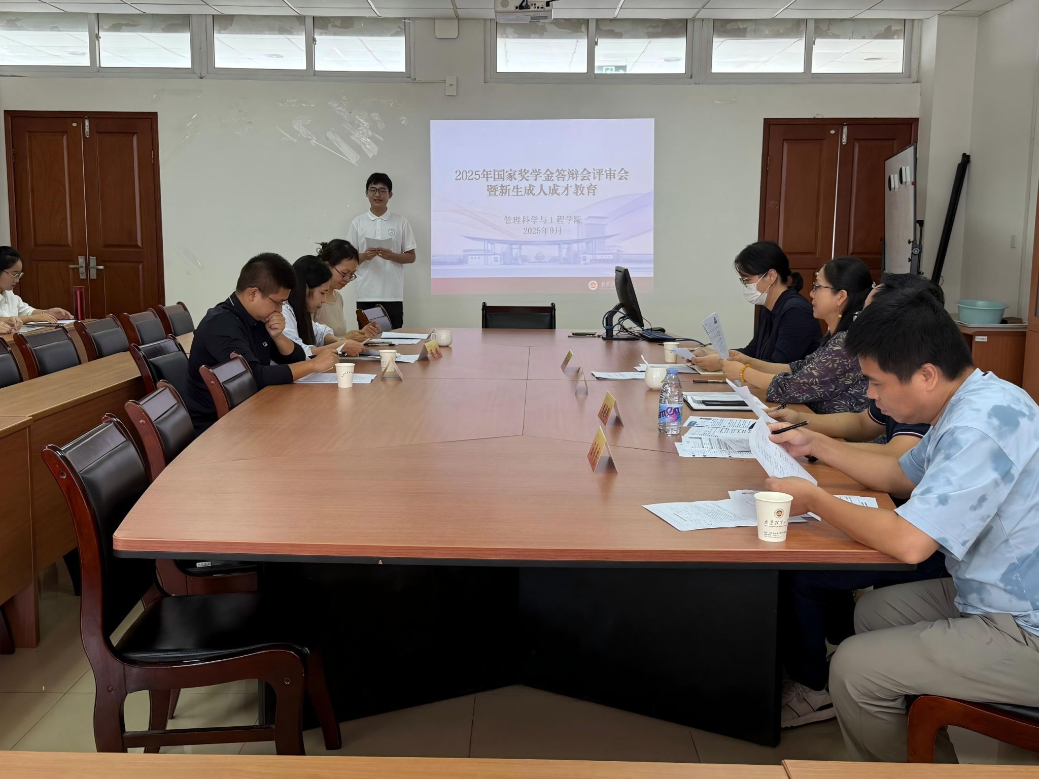 为扎实做好国家奖学金评选工作,发挥优秀学子示范引领作用,促进学风建设,9月28日上午,7790必发集团2025年国家奖学金答辩评审会暨新生成人成才教育活动在德济楼507会议室举行。经学院初审,共有四位本科生和一位研究生参加答辩。7790必发集团党委书记金立林老师、党委副书记王卓君老师、管理科学系主任王月虎老师、质量管理工程系主任李晓鹏老师、杨帆老师、分团委书记兼辅导员陆秀军老师、本科生党支部纪律委员兼辅导员唐琰老师以及学院本科生出席本次评审会。