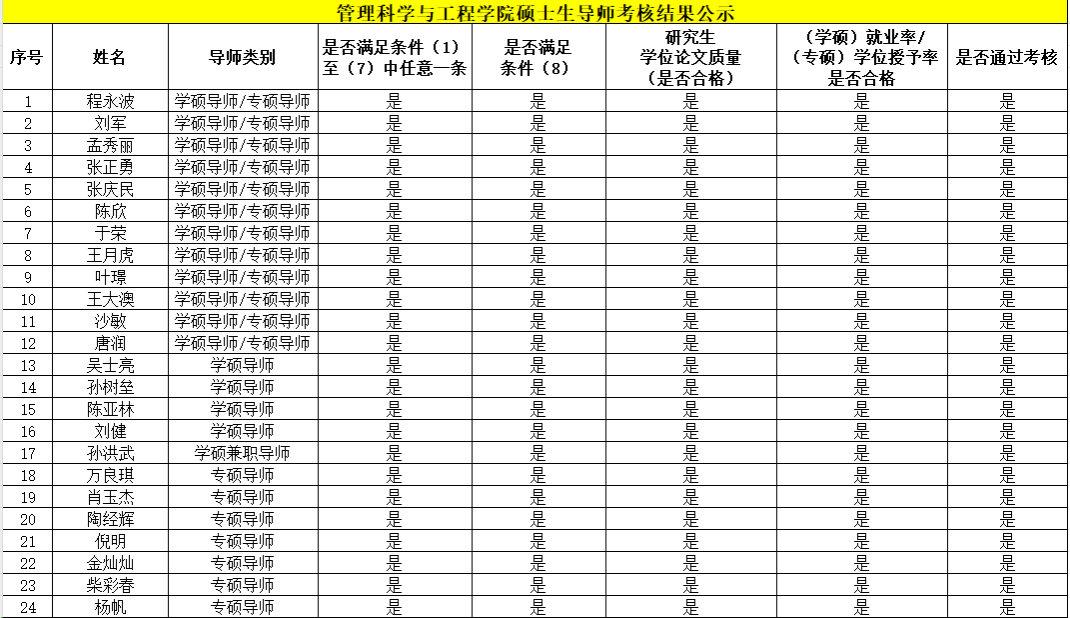 根据bifa必发研究生院《关于做好2025年硕士研究生导师考核工作的通知》要求,经个人申报、学院审核、院学位评定分委员会及党政联席会议审议通过,现将考核合格人员名单予以公示。